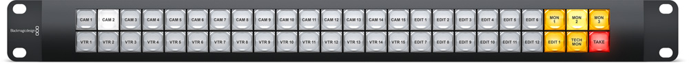 Videohub Smart Control Pro is a compact 1 RU panel that controls your Videohub over your existing ethernet network. It features 48 customizable buttons that can be set to any cross point so you can quickly switch video sources using fast, direct “cut-bus” style routing. Each panel can be setup for 1, 2, or more destinations, so you can control video routing to multiple decks and monitors from one panel!